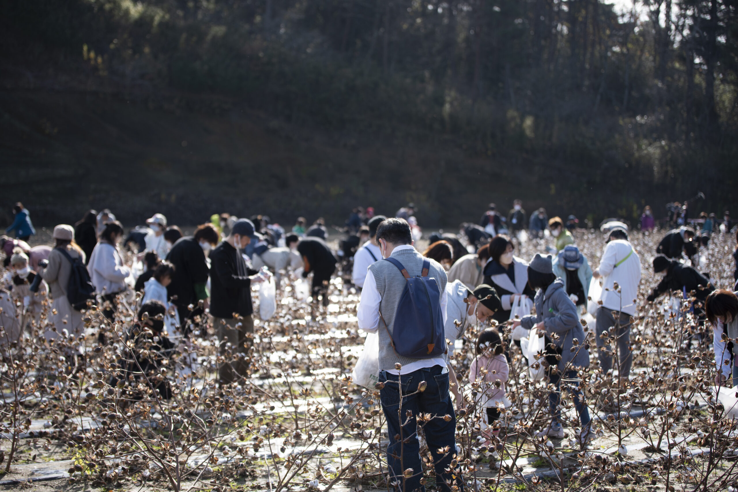 - 東松島・赤坂農園で開催される東北コットンフェスを見学、綿つみ体験。