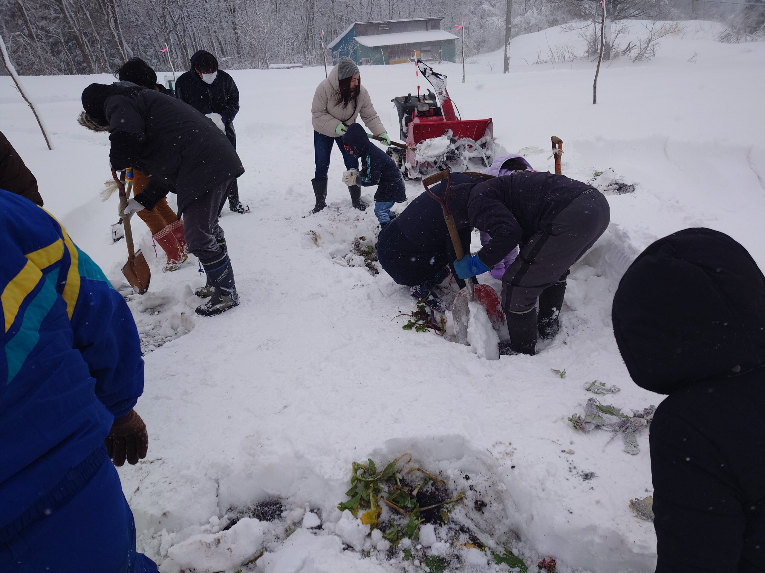 • 雪の中から貴重な伝承野菜を掘る収穫体験